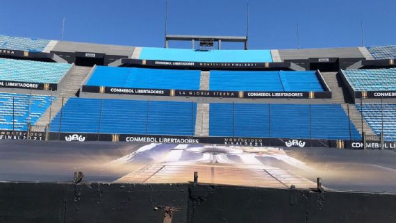 Estádio escolhido para receber Palmeiras x Flamengo, neste sábado, em Montevidéu, está todo envelopado com a decoração da Libertadores
