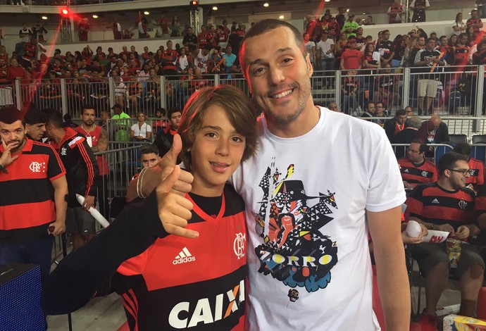O goleiro Júlio César e o filho Cauet torceram para o Flamengo na final do NBB (Foto: Tiago Leme)