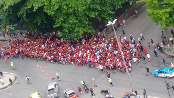 A nova ''invasão'' é, de novo, fruto de uma mobilização dos torcedores através das redes sociais. O mesmo havia acontecido antes do embarque do time para o confronto contra o Palmeiras. Na convocação divulgada na web, foi marcada uma concentração dos rubro-negros na estação da Central do Brasil. O voo está previsto para 15h10 e desde 12h há muitos torcedores no local, aguardando a delegação.