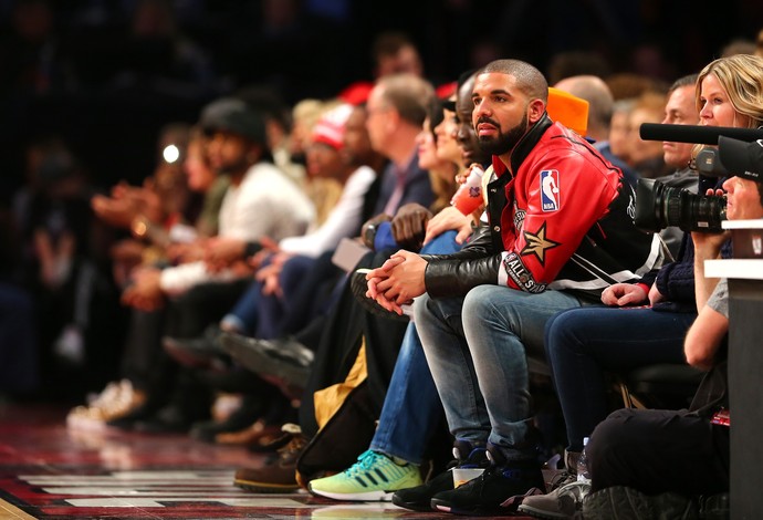 Drake, rapper canadense e fã de basquete: seria mais um sósia de Olivinha? (Foto: Elsa/Getty Images)