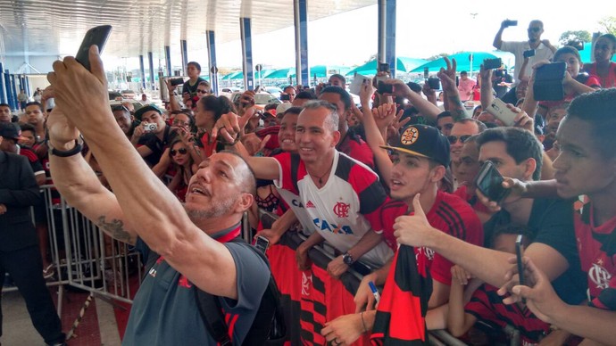 Mozer tira selfie: ex-jogador é um dos mais assediados no dia a dia do Flamengo (Foto: Gilvan de Souza)