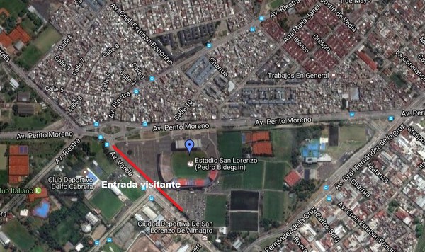 A torcida do Flamengo ficará localizada à direita da tribuna (veja no topo da matéria), atrás de um dos gols. Nesta área, se posicionará à esquerda do escudo do San Lorenzo. O acesso dos rubro-negros é pela Avenida Varela.
