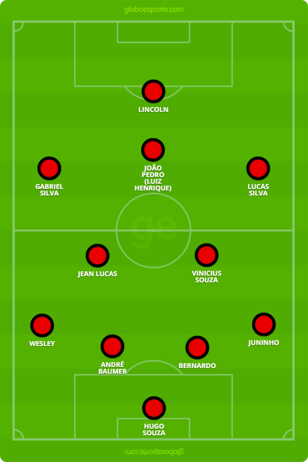 A escalação é suspense, principalmente no sistema defensiva. Wesley, que voltou a atuar no sub-17 para pegar ritmo, pode ser improvisado na esquerda, e Juninho, já utilizado na competição, está relacionado e tem chances de assumir a posição de Kleber na direita.