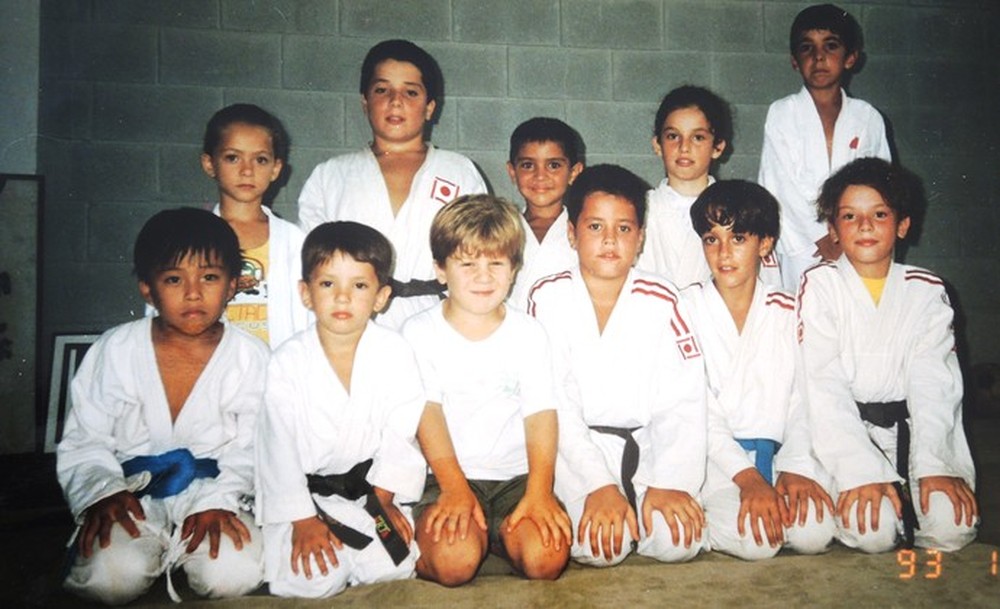Segundo da esquerda para direita, Everton Ribeiro praticou judô seis anos e foi até a faixa azul (Foto: Arquivo Pessoal)