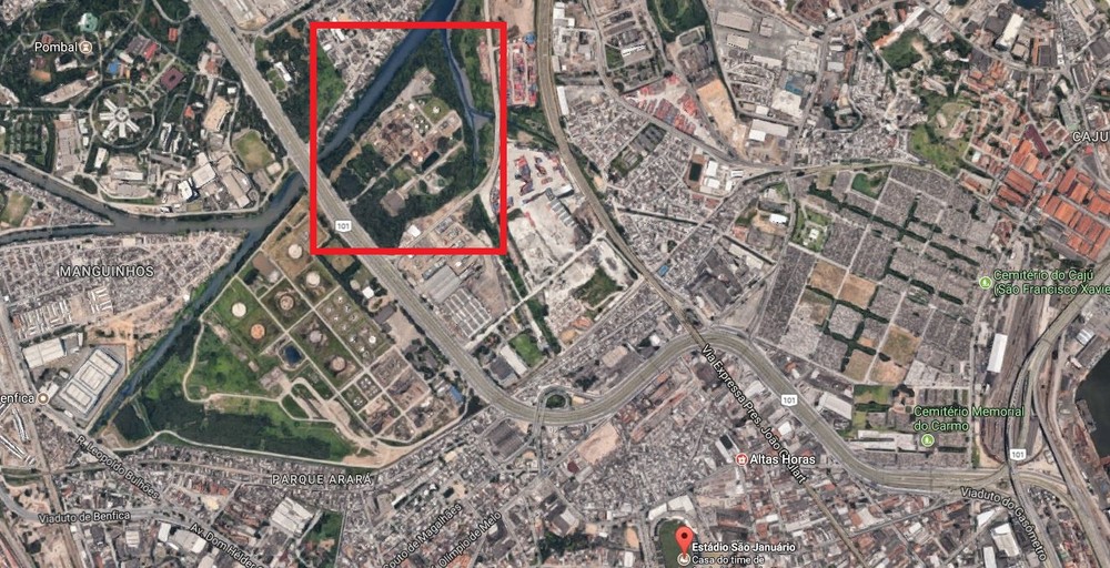 Área onde o Flamengo encontrou terreno fica no lado direito da Avenida Brasil, sentido zona norte do Rio (Foto: Reprodução)
