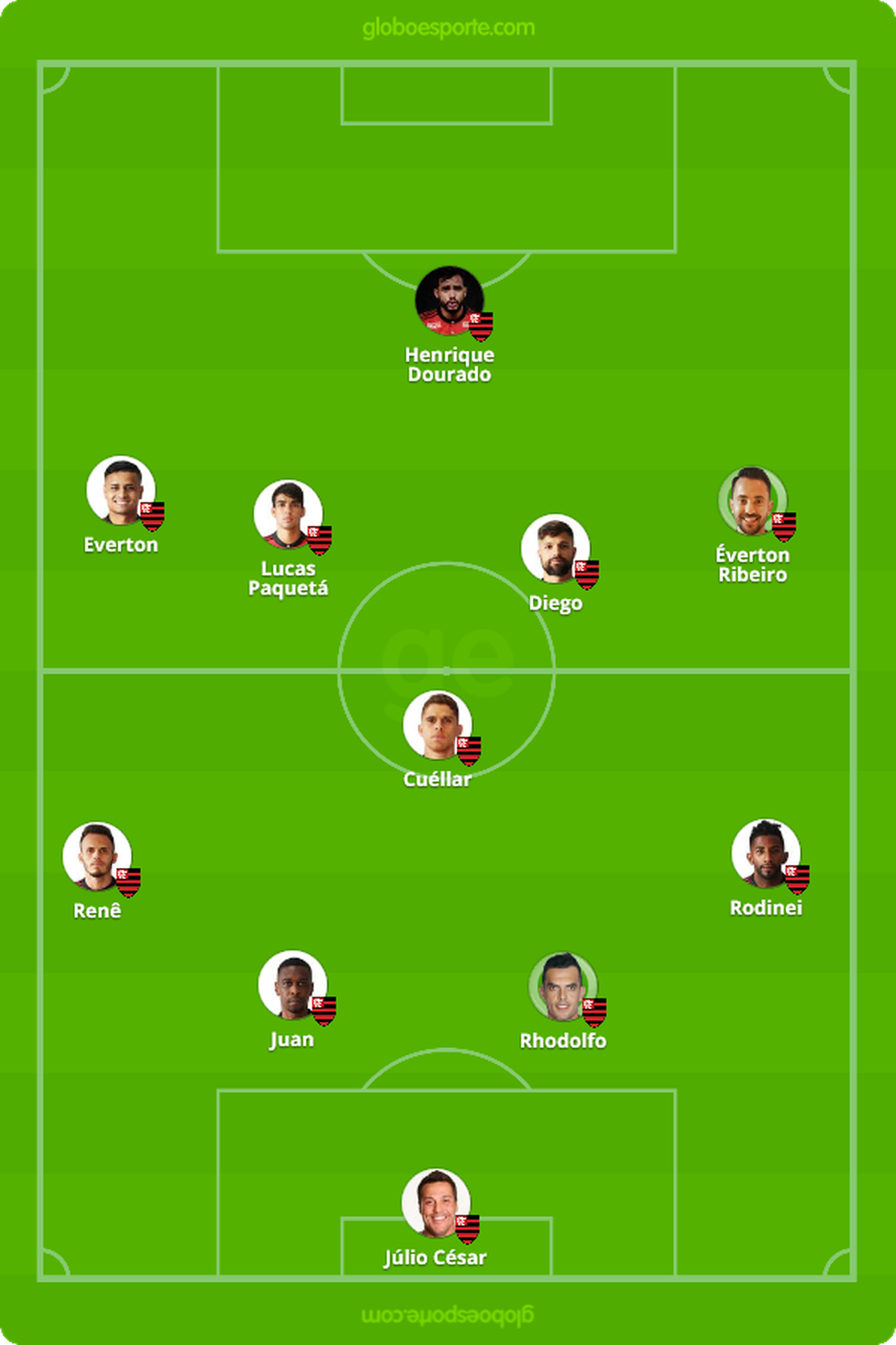 Provável escalação do Flamengo, com Júlio César no gol (Foto: Reprodução)