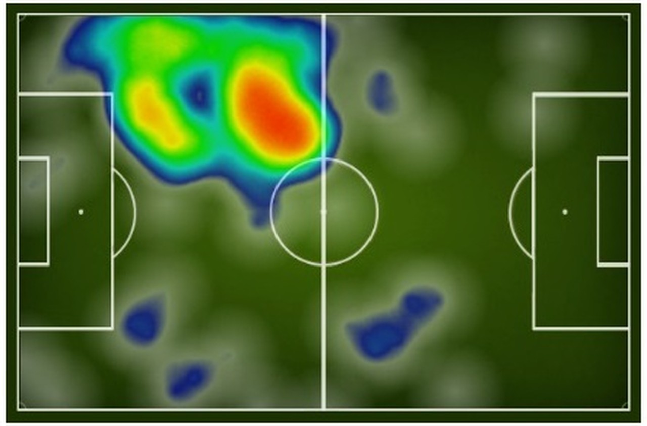 Mapa de calor de Paquetá contra o Boavista. Neste sábado, tendência é que ele atue mais centralizado (Foto: Footstats)