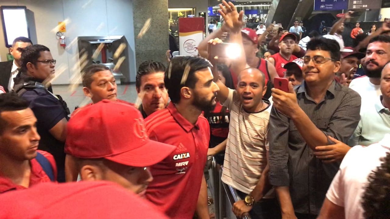 Assustados, os jogadores passaram pelo saguão do aeroporto por cerca de cinco minutos sob gritos de "time sem vergonha" e pedidos de raça. Como já tinha acontecido no Rio de Janeiro, Diego foi o mais cobrado, mas não com a mesma veemência de quatro horas antes. Entre os poupados, estavam Cuellar e, principalmente, Lucas Paquetá, um dos últimos a entrar no ônibus por ser cercado para pedidos de fotos.