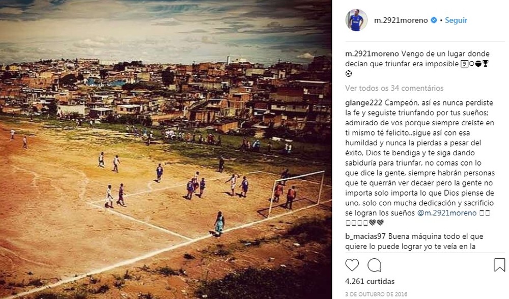 No seu Instagram, há uma foto de um campo de futebol num local de casas humildes e uma frase que me chamou a atenção: “Venho de um lugar onde diziam que triunfar era impossível”. O que representa essa mensagem para você?
