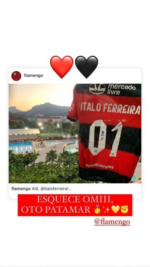 Nas redes sociais, o Mais Querido se manifestou parabenizando Ítalo Ferreira e fez uma publicação mostrando um Mantro Sagrado personalizado prontinho, apenas esperando para ser entregue ao surfista. Com isso, o atleta se manifestou compartilhando o post nos stories do Instagram: “Esquece. Oto patamar”, disse, marcando o Fla.