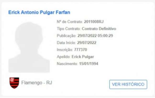 Menos de uma hora depois de ser anunciado, o volante Erick Pulgar foi regularizado pelo Flamengo. Terceiro reforço rubro-negro para o restante da temporada, o chileno teve o nome publicado no BID (Boletim Informativo Diário) da CBF, na tarde desta sexta-feira, e está liberado para estrear.