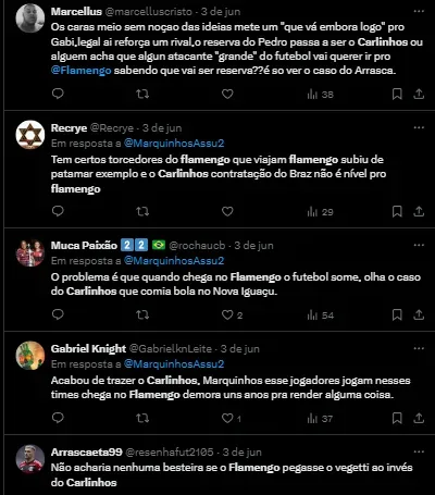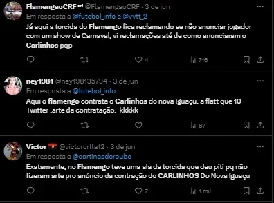 Situação confirmada sobre o jogador Após o jogo, Matheus Bachi, auxiliar de Tite no Flamengo , explicou o motivo do atleta não ter sido barrado e não ficar nem no banco de reservas no clássico contra o Vasco. Foi revelado que ele está com problemas físicos e passou por um processo de recuperação. A tendência é que no próximo jogo ele já tenha condições de atuar. “O Carlinhos está em processo de recuperação física. Ficou doente, variou, não conseguiu fazer os trabalhos. Não é nem opção técnica, é opção mais de não ter se recuperado e não estar apto 100% pro jogo. Foi mais nesse sentido. Acho que ele vem há uma semana se recuperar, sem conseguir um trabalho sequencial”, explicou o profissional. “É mais nesse sentido. A gente espera já que na quinta-feira (06), na reapresentação, ele já trabalhe com o grupo e esteja pronto, à disposição para o jogo contra o Grêmio. A aceitação foi boa, o grupo costuma receber muito bem os atletas que chegam”, completou o auxiliar.