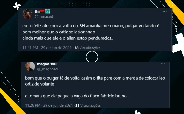 Mengo terá retorno fundamental O Flamengo é o atual líder do Brasileirão e vem realizando uma ótima campanha. Mesmo sendo o time mais afetado pelos desfalques da Copa América, os resultados chamam a atenção do torcedor. © Getty Images Pulgar em ação na partida contra o Peru. Foto: Omar Vega/Getty Images Por mais que tenha sido derrotado pelo Juventude na rodada passada, o Rubro-Negro vem lidando bem com as ausências, mesmo tendo que improvisar em alguns setores. Dentre eles, um nome que vem atuando em outra função é Léo Ortiz . O ex-zagueiro do Red Bull Bragantino tem sido o substituto de Erick Pulgar e está jogando na posição de primeiro volante. Aliás, por mais que alguns flamenguistas prefiram vê-lo na zaga, o desempenho vem agradando e a tendência é que haja disputa. Com a eliminação dramática e inesperada de sua seleção diante do Canadá, a volta do chileno dividiu as opiniões na web. Mais sobre o momento do Fla Vale ressaltar que Léo Ortiz foi contratado no começo do ano após uma longa novela com o Massa Bruta. No entanto, chegou com a dupla Fabrício Bruno e Léo Pereira encaixada, ficando na reserva. Assim, como segue esperando o espaço no time titular, topou jogar de volante e, de maneira surpreendente, fez bons jogos no setor. Ele já atuou em sete dos 12 jogos do Mengão no Brasileirão. De qualquer forma, Pulgar vinha sendo um dos principais protagonistas do time de Tite e, caso esteja à disposição para o duelo contra o Atlético-MG, possivelmente deve retornar ao time. Por fim, se Pulgar está de volta de forma antecipada, o quarteto uruguaio (De la Cruz, Arrascaeta, Viña e Varela) segue firme na competição e já está garantido no mata-mata. Ortiz e Pulgar viram debate