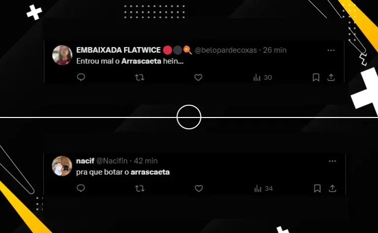 Opção de Bielsa Pela decisão do 3° colocado da Copa América de 2024, Canadá e Uruguai entraram em campo no Bank of America Stadium, em Charlotte, na noite do sábado (13). Em uma partida equilibrada, os uruguaios venceram nos pênaltis. © Getty Images Meio-campista não se destacou na Copa América. Photo by Buda Mendes/Getty Images Marcelo Bielsa manteve De Arrascaeta no banco de reservas, pelo menos no 1° tempo. O meio-campista do Flamengo entrou no intervalo e atuou durante os 45 minutos finais do confronto. A torcida do Flamengo não entendeu a opção de Bielsa: “por qual razão Arrascaeta virou a 3ª opção na Seleção Uruguaia?”. “Se não for escalar o jogador, é melhor nem o convocar“, disse outro flamenguista durante a partida da Copa América. Outros até aprovaram a ideia enquanto outros torcedores aprovaram a ideia de Bielsa: “ótimo! Descansa nosso craque“. Na atual edição da Copa América, o meio-campista disputou cinco partidas, sendo titular apenas na estreia, diante do Panamá. Em contrapartida, quando entrou em campo, torcedores de Uruguai e também do Flamengo não gostaram do desempenho apresentado na partida. De Arrascaeta não conseguiu apresentar o que já pelo Rubro-Negro. Com o apito final, o Uruguai conquistou o 3° lugar na Copa América de 2024, foi uma das agradáveis surpresa da competição. Em contrapartida, o Canadá também se destacou. De volta ao Flamengo Após o fim da Copa América, De La Cruz, Arrascaeta, Varela e Viña retornam ao Flamengo para o restante da temporada. Nas últimas partidas, Tite precisou fazer mudanças no time titular. O Rubro-Negro deve contar com os reforços já na próxima partida, que acontece no sábado (20), diante do Criciúma. O jogo é válido pela 18ª rodada do Brasileirão Série A 2024. Os comentários dos torcedores