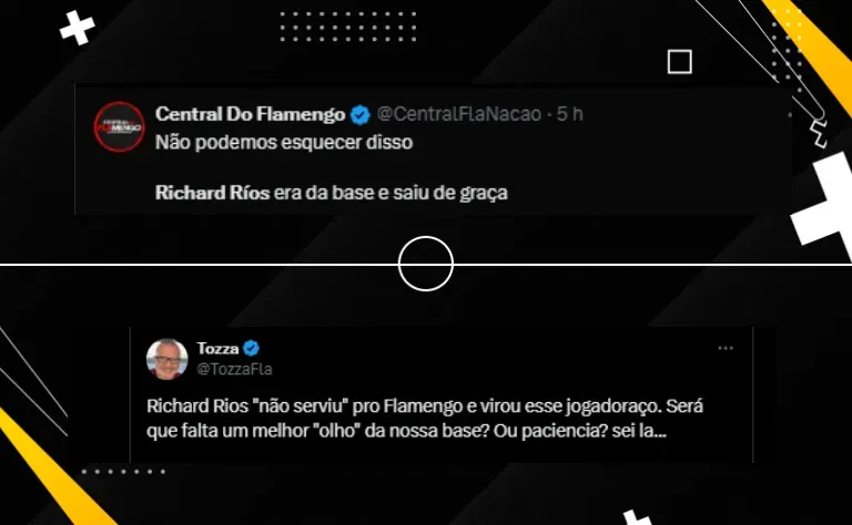 Os torcedores do Flamengo expressaram sua frustração nas redes sociais pelo fato de Richard Ríos ter sido jogador da base do clube e posteriormente liberado. Alguns questionaram a falta de paciência do clube e a capacidade de identificar talentos na base. A insatisfação foi evidente, com torcedores lamentando a perda do jogador, que agora se destaca em outro clube.
