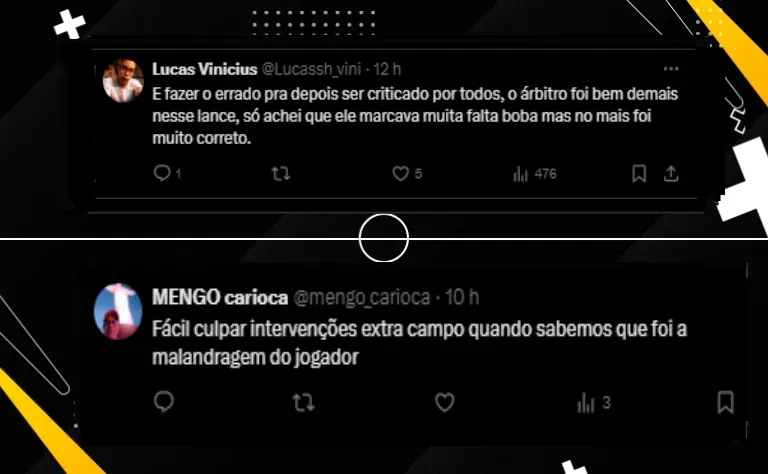 “ O número 88 chutou a bola extra que atinge a outra bola, tá? Tá correto, é como se fosse lançamento de objeto que atinge a bola e impacta no jogo, tá? ”, disse um dos membros da cabine. Também foi debatido a possibilidade de expulsão, o que foi descartado: “ Não era oportunidade de gol, não era para vermelho. Tem o defensor aqui e outro jogador que poderia receber o passe também está marcado ”. Reações da Nação sobre as marcações