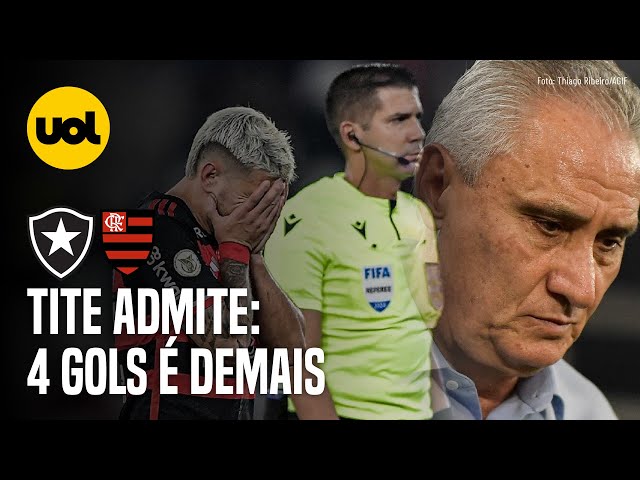 Siga o UOL Esporte no O Flamengo foi goleado pelo Botafogo, neste domingo, por 4 a 1 , pela 23ª rodada do Campeonato Brasileiro , no Nilton Santos. Depois do jogo, o técnico Tite parabenizou o Alvinegro pelo desempenho, mas ressaltou que o seu time não pode sofrer quatro gols. "Parabenizar o Botafogo pelo grande jogo que fez, manteve o nível muito regular no primeiro e segundo tempo, sempre em alto nível. Temos que saber olhar para o outro lado e reconhecer, mesmo tendo toda dor da derrota. O Flamengo não pode perder de 4 a 1, não pode tomar quatro gols, temos consciência disso", disse Tite.