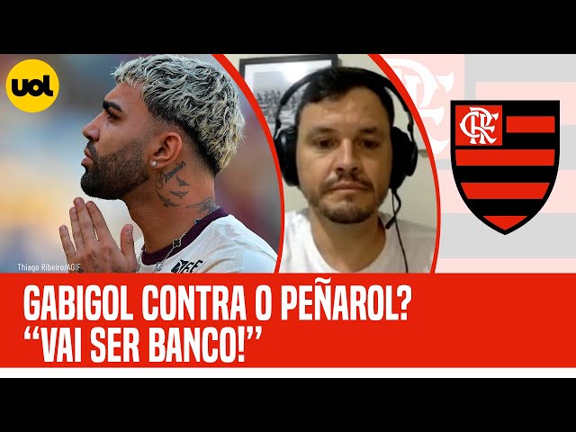 Durante a Live do Flamengo desta segunda (23), o colunista Rodrigo Mattos informou que Gabigol não está sendo cogitado para ser titular contra o Peñarol, no jogo de volta das quartas de final da Copa Libertadores da América. Mattos disse que Gabigol só não viajou para o jogo contra o Grêmio, em que só reservas entraram em campo, por conta de uma fibrose. Esse é o motivo de ele ter treinado com os titulares, que ficaram no Rio, e não a possibilidade de ele ser titular no próximo jogo. A informação que eu tenho [sobre o Gabigol] é que ele vai ser banco [contra o Peñarol]. Não vai ser titular. Ele treinou, vai ser opção, mas não treinou como titular. Ele entrou como uma opção, como pode entrar [no jogo]. Fez sentido ele ser opção [no treino e não contra o Grêmio]. Ele estava com essa coisa da fibrose, que não é uma contusão, mas que não faria sentido ir para o Sul. Ele fica preparado para o jogo mais importante. Mas vai muito pela mística, pelo que ele já fez pelo Flamengo no passado. Nada do que ele fez recentemente, mostra que ele é [a melhor opção]. Rodrigo Mattos