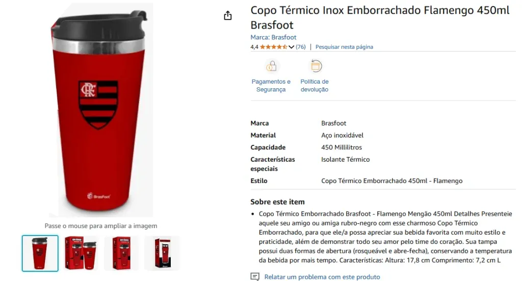Que tipo de produto do Flamengo existe no mercado? Bem, existe uma vasta gama de produtos com a marca do Flamengo, licenciados oficialmente ou não. O maior exemplo é a camisa, a forma mais prática que inventaram de fazer com que o torcedor se sinta parte do time. Mas além disso, utensílios e outras roupas servem para fortalecer ainda mais a presença do Mengo nas ruas do Brasil. Você pode ser flamenguista com uma caneca, uma caneta, uma mochila, um chinelo e até mesmo no caderno da escola. Para sugerir alguns presentes úteis para seus familiares e amigos rubro-negros, vasculhamos o site da Amazon em busca de coisas que nós mesmos compraríamos se tivéssemos a chance. Desta vez, ficamos com um tênis lindíssimo, um copo térmico e um cavalinho de pelúcia.
