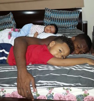 Erazo abraçado ao filho e com o caçula ainda neném nas costas (Foto: Arquivo Pessoal )