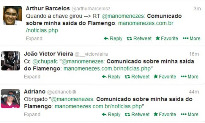 Torcedores lembram pedido de demissão de Mano após o título do Fla na Copa do Brasil (Foto: Reprodução / Twitter)