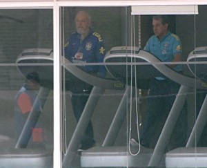 Já Carlos Alberto Parreira, apareceu um pouco mais tarde ao lado do cardiologista Serafim Borges. O coordenador técnico da seleção aproveitou o final da manhã para dedicar-se às atividades físicas. Na academia, ele realizou uma caminhada leve na esteira.