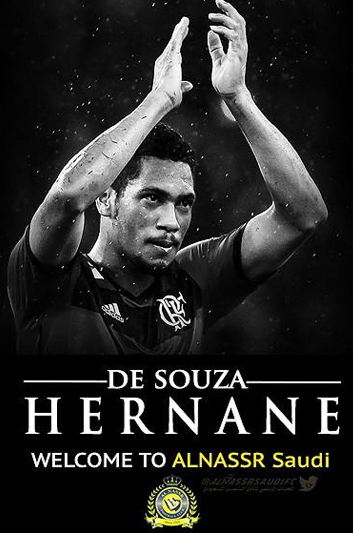 Outro jogador que está de saída, mas do Flamengo para o futebol árabe, é Hernane. O Al Nassr anunciou em seu perfil oficial no Twitter a contratação do atacante. A oferta é de 4,5 milhões de euros (R$ 13,6 milhões) com um contrato de três anos. O Flamengo é dono de 50% dos direitos econômicos e vai receber a sua parte, quase R$ 7 milhões, em duas vezes. O restante do jogador pertence à empresa Talents Sports, do seu empresário Paulo Pitombeira, e ao Mogi Mirim.