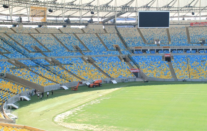 Com 105m x 68m, medida que atende aos padrões da Fifa, o gramado do Maracanã passou por um tratamento no mês de janeiro. Foram realizados cortes, irrigação e adubação. Um processo chamado topdressing também foi feito. Essa é uma técnica feita por uma máquina, que faz pequenos furos no campo, retira material, e depois areia é injetada. O objetivo é intensificar a areação das raízes para que o adubo penetre melhor no gramado.