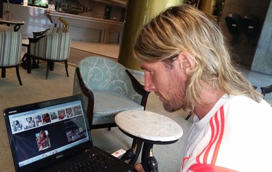 Herrmann foi "apresentado" ao craque Doval na sexta-feira através de Fotos e vídeos do famoso camisa 9 (Foto: Marcello Pires)