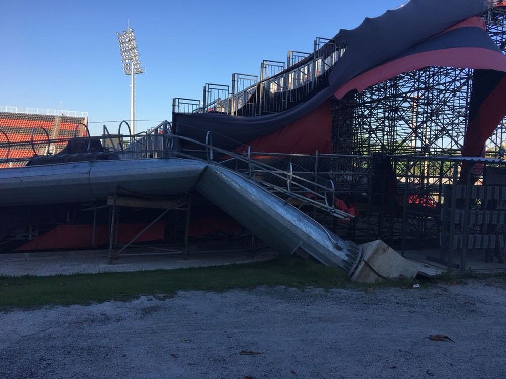 O GloboEsporte.com teve acesso a fotos do estádio desta segunda-feira. As torres de iluminação continuam nos mesmos lugares. O incidente ocorreu em 14 de fevereiro, por conta de um temporal que desabou no Rio de Janeiro. Não houve feridos, mas deixou o Flamengo sem ter onde mandar alguns dos seus jogos na temporada.