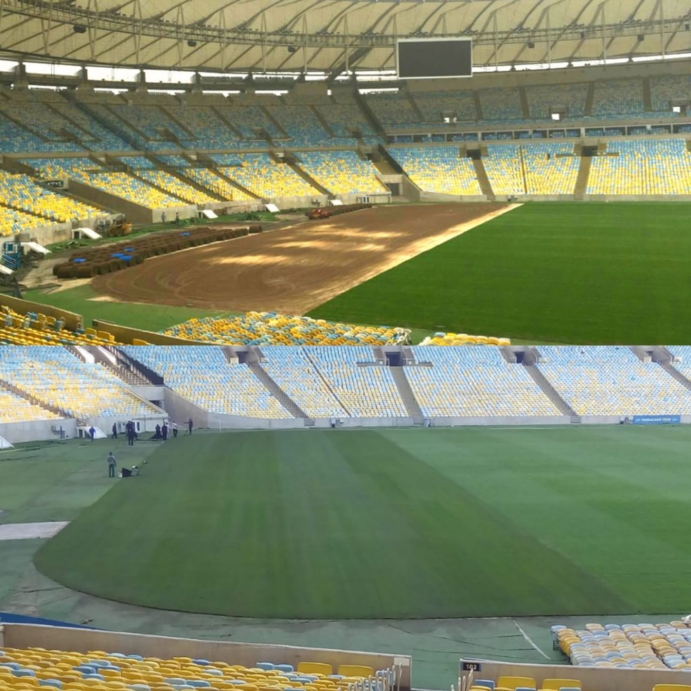 Gramado do Maracanã foi trocado na parada da Copa do Mundo (Foto: Divulgação Greenleaf)