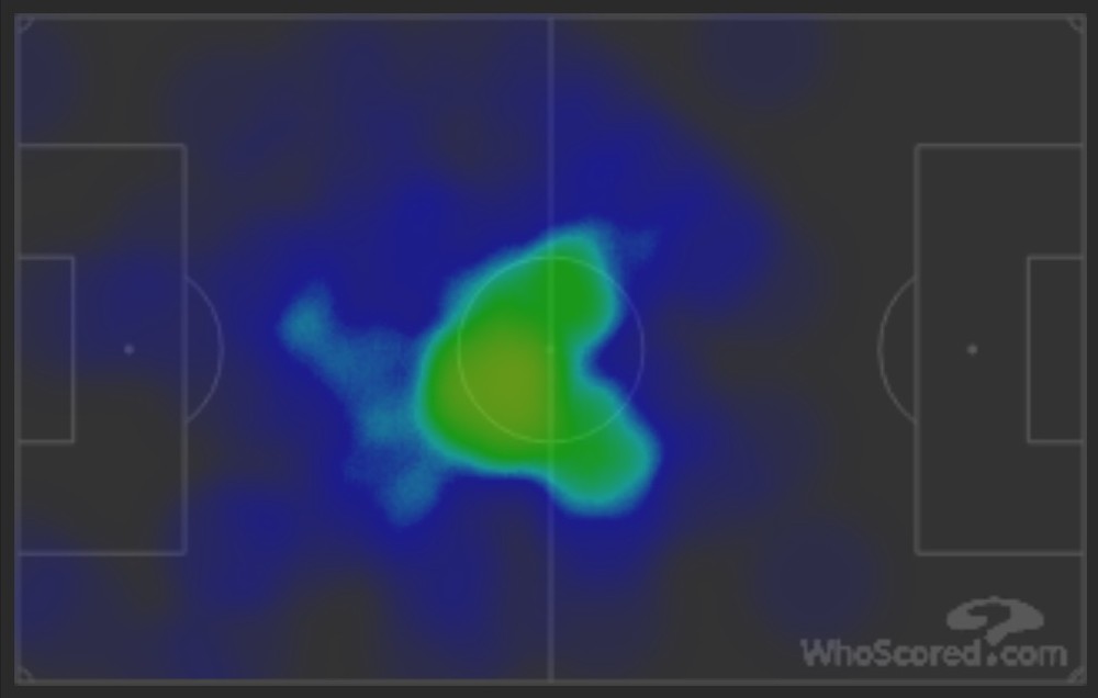 O estilo de jogo é simples: ocupa, de costume, a faixa central do gramado, como retratado no mapa de calor contra o Paraná - roubou dez bolas na partida. Além das roubadas, aparece com destaque nas antecipações.