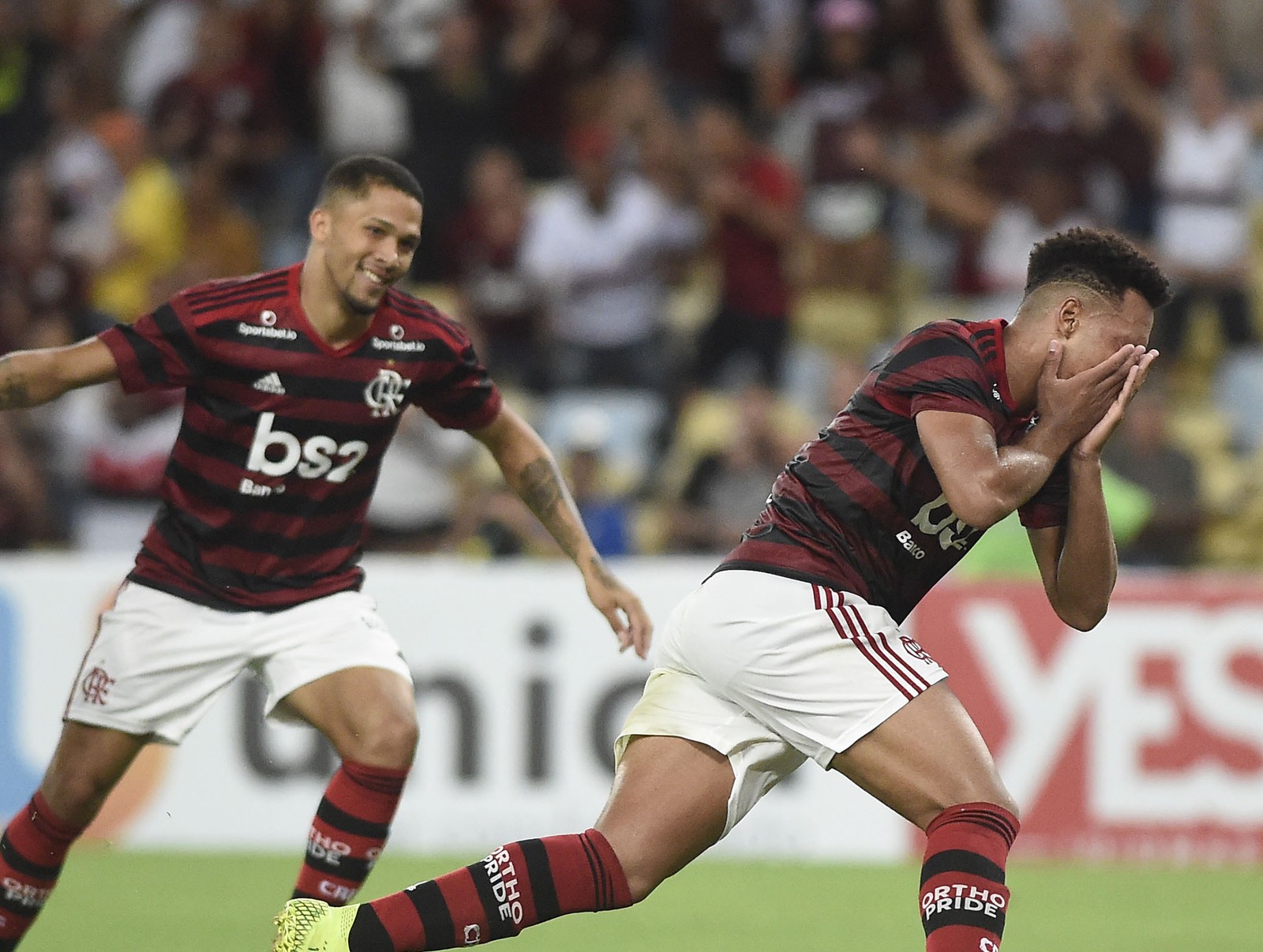 "O Bruno teve um trauma importante no jogo, na dividida do goleiro. Um trauma da perna dele com a perna do goleiro. Estava com muita dor no momento do gol, não conseguiu comemorar, nem ficar em pé, já pediu substituição. A gente na avaliação, numa possibilidade de fratura, a gente levou para o hospital direto, fizemos radiografia e não constatou nenhum tipo de fratura. Ele está tratando, está medicado e vamos avaliando durante a semana. Um grande susto, um baita susto. Aqui no Equador temos o histórico do Diego recente. A gente teve agora esse susto, mas graças a Deus não foi nada demais", afirmou o doutor João Marcelo, médico da delegação do Flamengo no Equador.
