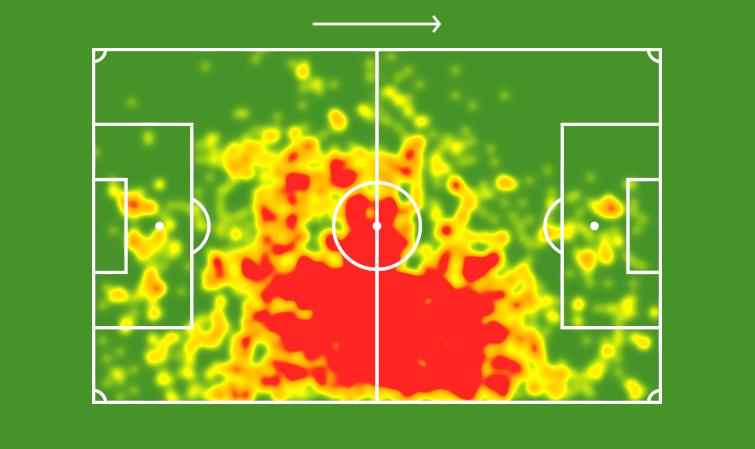 A sua primeira grande metamorfose veio com a chegada de Jorge Jesus, em 2019. Arão deixou de ser um segundo volante e passou a ser o cão de guarda da defesa rubro-negra. Seu desempenho cresceu muito e ele se tornou um dos pilares de um dos times mais vitoriosos da história do clube. Foi fundamental na saída de bola, principalmente com lançamentos longos precisos e evoluiu muito na marcação, algo que era cobrado dele. A célebre frase “Tá mal, Arão” dita pelo técnico português no seu primeiro jogo treino, contra o Madureira, na Gávea, serviu de combustível de melhora para o camisa 5. Passou a atuar pelo campo inteiro e não mais só pela faixa direita, como mostra o mapa de calor abaixo.